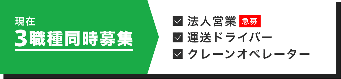 未経験者は、先輩社員とのOJT研修を通じ、一人で現場に出れるまでマンツーマンでサポートします。求める人材 【必須】普通運転免許(AT限定可)